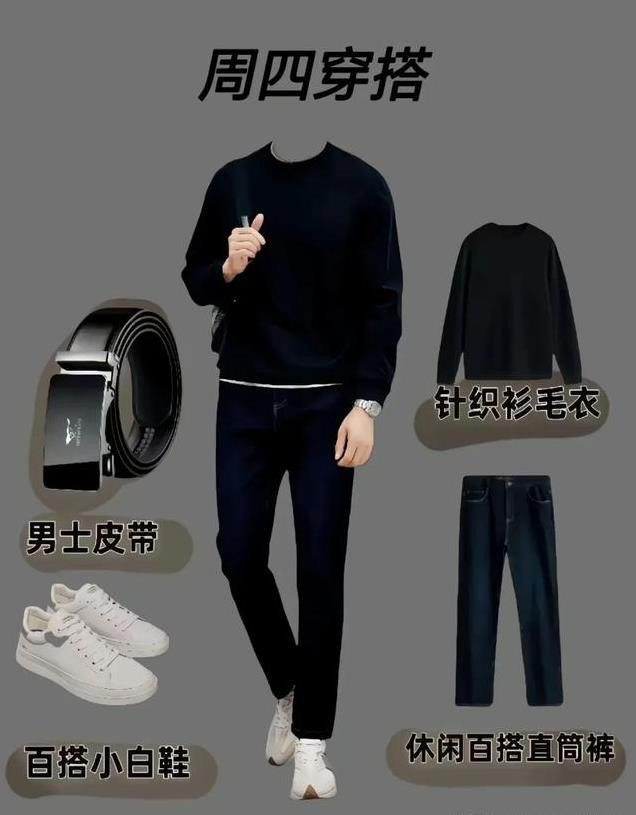 上衣:黑色针织衫毛衣,简约而不失高级感,适合周一这个充满挑战的新开始。